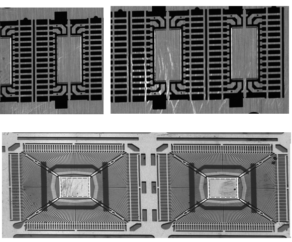 检测芯片上的铝路划伤、晶粒脱落/破裂/暴裂/倾斜等27项。